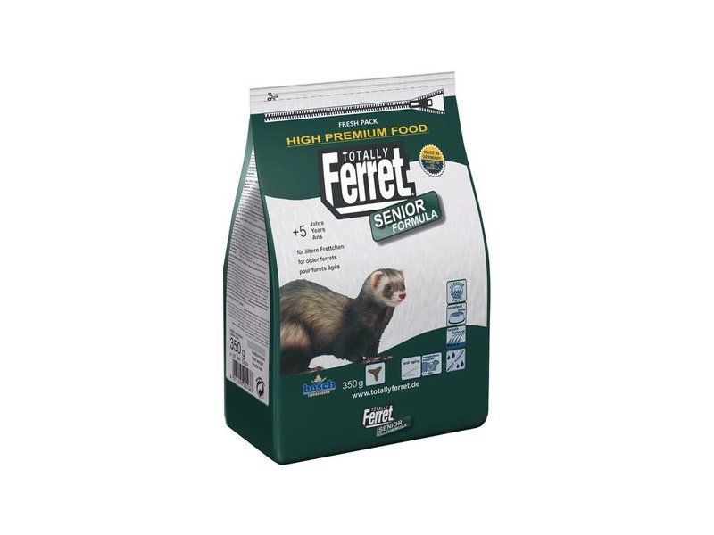 Totally Ferret Senior je určen pro fretky nad 5 let. Starší fretky bývají často ještě velmi aktivní, a proto mají jiné nároky na výživu než starší kočky. Z toho důvodu potřebují speciální senior stravu pro fretky.