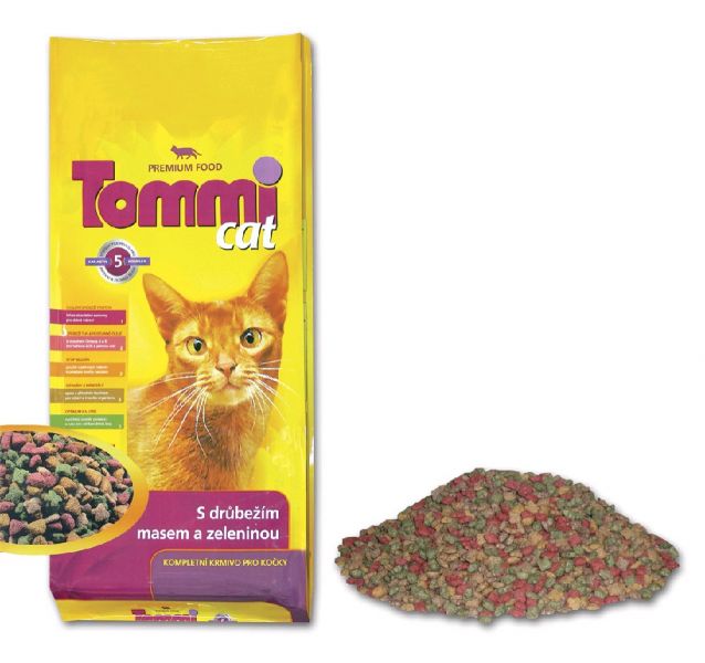 Krmivo Tommi Cat je vyráběno podle firemní receptury z drůbežího masa a zeleniny.