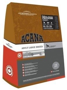 To je důvod, proč je krmivo ACANA ADULT LARGE BREED plné kuřecího masa z volných chovů, celých vajec z místních prérijních farem, volně lovených platýsů z Vancouver Island a ovoce a zeleniny z údolí Okanagan, Britská Kolumbie. Všechny suroviny jsou dodávány ČERSTVÉ a BEZ KONZERVANTŮ a mají tak bezkonkurenční výživovou hodnotu a chuť. ACANA neobsahuje vysokoglykemické obiloviny jako je např. rýže, kukuřice a pšenice, které můžete nalézt v běžných krmivech, a vyznačuje se obsahem místního řezaného ovsa, jakožto NÍZKOGLYKEMICKÉHO, HYPOALERGENNÍHO A JEDINÉHO ZDROJE obilovin. Krmivo ACANA se vyrábí výhradně v naší oceňované továrně, zde v Albertě, v Kanadě a zaručuje, že udrží Vašeho velkého psa zdravého, šťastného a silného.