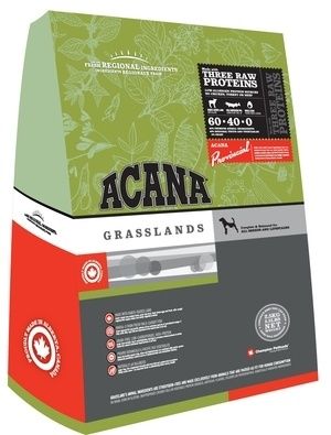 ACANA obsahuje více proteinů, méně sacharidů a žádné obiloviny. Lépe tak odpovídá přirozené psí stravě. GRASSLANDS se vyrábí ze syrového masa z jehňat chovaných na farmách (mající osvědčení o tom, že jim nebyly podávány hormony a antibiotika), celých čerstvých vajec z našich místních farem a candátů druhu Stizostedion vitreum a severských štik. Tyto ryby se loví přímo v regionu a dodávají se DENNĚ ČERSTVÉ, nezmražené a bez konzervačních prostředků.