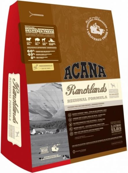 Krmivo ACANA Ranchlands v sobě odráží bohaté albertské zemědělství. Toto krmivo je plné místního červeného masa, včetně volně chovaného anguského hovězího, jehněčího a bizona – vše je dodáváno čerstvé každý den, aby Vašemu psovi byla poskytnuta kompletní výživa.