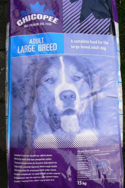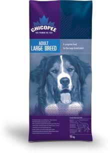 Chicopee Adult Large Breed je tvarem a velikostí granulí speciálně přizpůsobeno psům velkých a obřích plemen. Pro tato plemena je důležité udržení dobré fyzické kondice a štíhlé stavby těla. Chicopee Adult Large Breed poskytuje optimální výživu a svým obsahem glukosaminu a chondroitinu napomáhá předcházet kloubním onemocněním, na která jsou velká a obří plemena psů náchylná. Tyto komponenty přispívají k úlevě postižených kloubů a zabraňují jejich degeneraci.Obsažené nenasycené mastné kyseliny Omega 3 a Omega 6 zajišťují hebkou, lesklou srst a zdravou kůži. Chicopee Adult Large Breed celkově splňuje nutriční požadavky a zajišťuje špičkovou fyzickou kondici.