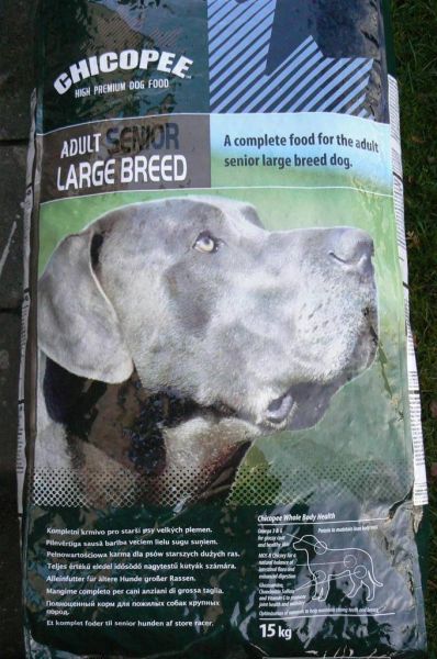 CHICOPEE Adult Senior Large Breed je kompletní krmivo navrženo tak, aby splňovalo všechny nároky pro optimální výživu starších psů velkých plemen. Krmivo je vyváženou stravou odpovídající požadavkům na výživu psa velkého plemene staršího 7 let. Pomáhá udržovat dobrou kondici, zachovávat pohyblivost a usnadňovat trávení. Pohyblivost kloubů podporuje zvýšený přídavek glukosaminu a chondroitinu. Tyto látky jsou důležité ve výživě kloubů a měkkých tkání, jako jsou šlachy a vazy. U starších psů velkých plemen je třeba dbát na vyváženou stravu, aby nedocházelo k tloustnutí psa a následně nadměrné zátěži kloubů. Přidané nenasycené mastné kyseliny Omega 3 a Omega 6 podporují lesklou srst a zdravou kůži. Přírodní vlastnosti získané z MOS (Manoligosacharidy) a extraktu z čekanky, mají příznivý vliv na střevní mikrofloru a imunitní systém se schopností potlačovat škodlivé bakterie. Velikost a tvrdost granulí je přizpůsobena ke snadnějšímu rozkousání.