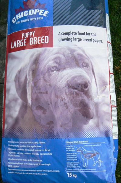 Chicopee Puppy Large Breed je kompletní vyváženou stravou pro štěňata velkých plemen. Toto krmivo bylo speciálně vyvinuto, aby odpovídalo požadavkům růstu velkých štěňat, poskytuje jim potřebnou výživu, dodává vitamíny i minerály a zajišťuje přirozený vývin. MOS (manoligosacharidy) spolu s čekankou podporují trávení a přispívají ke správnému růstu svalů a kostí. O výsledku působení nenasycených mastných kyselin Omega 3 a Omega 6 Vás přesvědčí hladká a lesklá srst a zdravá kůže.