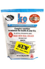 K-9 Selection MAINTENANCE poskytuje dospělému psovi malého plemene všechno nezbytné k dosažení kvalitního života. Je vhodným celoživotním krmivem pro malé psy, kteří už ukončili fázi růstu. Mnoha generacemi psů prověřené krmivo vyrobené z kuřat je velmi lehce stravitelné, udržuje dobré zdraví, tělesnou kondici a kvalitní srst.