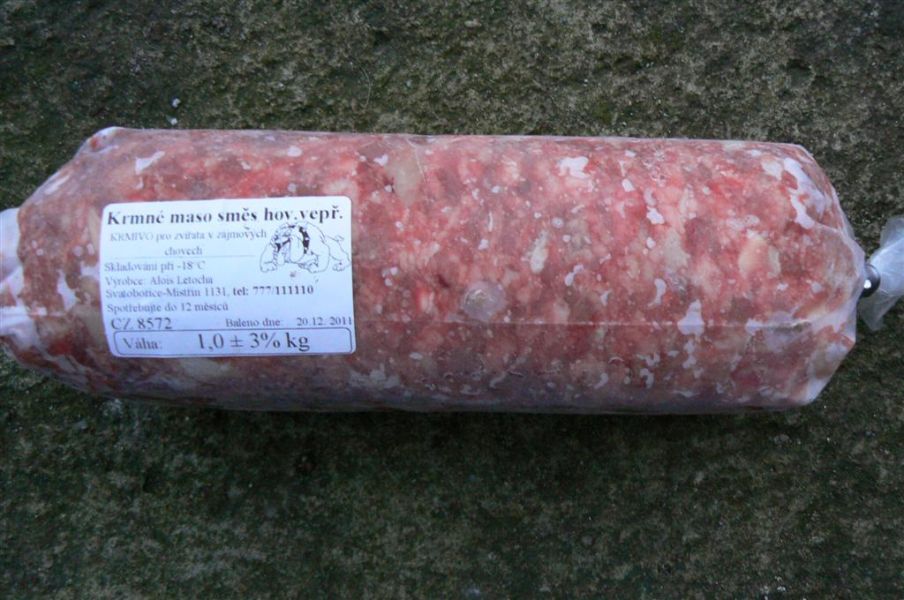 Prodejna / Psi / Mražené maso / Syrové / Mleté / Hovězí + vepřové hrubě mleté