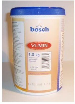 Bosch VI -MIN – Vitamínový a minerální koncentrát spolu se stopovými prvky, určený pro doplnění a vyvážení krmné dávky poskytované psům z vlastních zdrojů.
